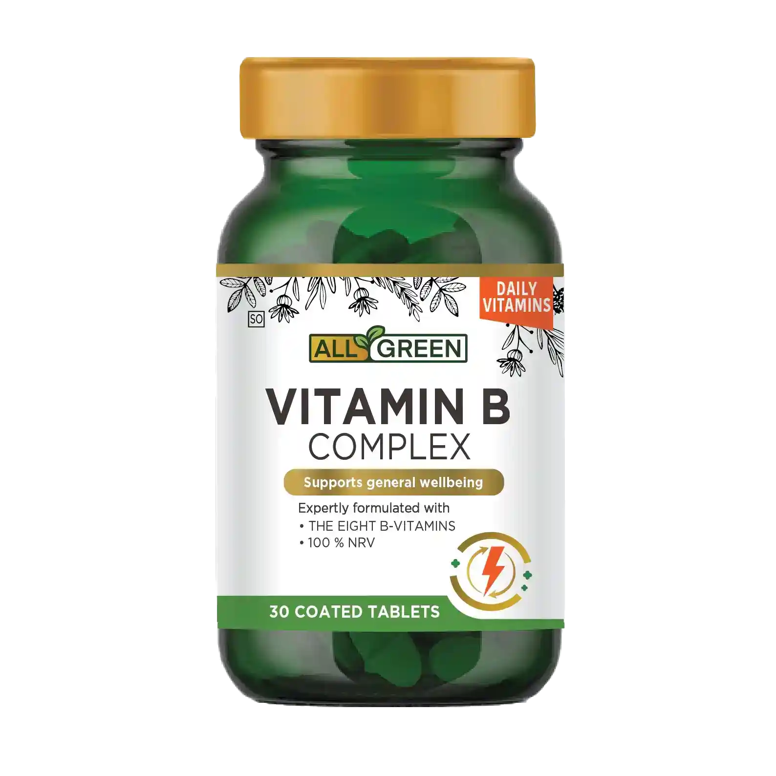 All Green Vitamin B Complex has been thoughtfully formulated to offer a synergistic blend of all essential B vitamins. These important nutrients each contribute to a different aspect of wellbeing, playing a key role in energy production, metabolism and maintaining a healthy nervous system.